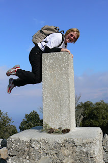 Så kommer vi till toppen på beget Fontanelles 867 meter över havet. Ingegerd intar toppositionen direkt. Vi vandrar vidare till den lilla ruinen på bergets topp som ärkehertig Louis Salvador hade som jaktstuga. Där äter vi vår medhavda matsäck innan vi vandrar vidare neråt igen.